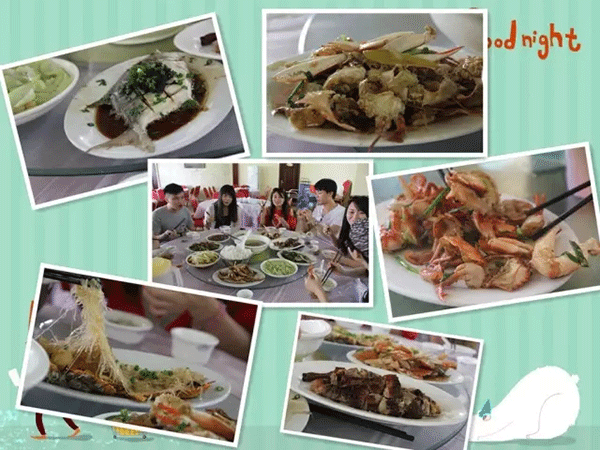 到底目的地,大家都有点饿了。去海边,怎能少了海鲜大餐呢?大花蟹、大炸虾、大鱿鱼……大大大!
