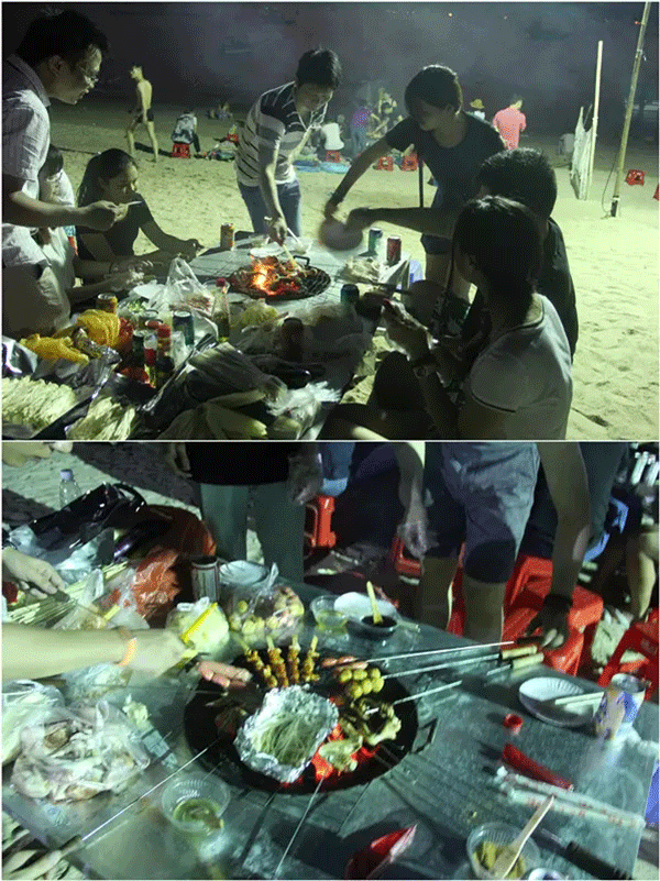 晚上又有什么活动呢?哈哈,肯定是最最最具海边特色的 ——海边自助烧烤啦! 想吃啥就吃啥,想喝啥就喝啥,这晚,喝酒、玩游戏、唱歌……大家都HIGH起来了!